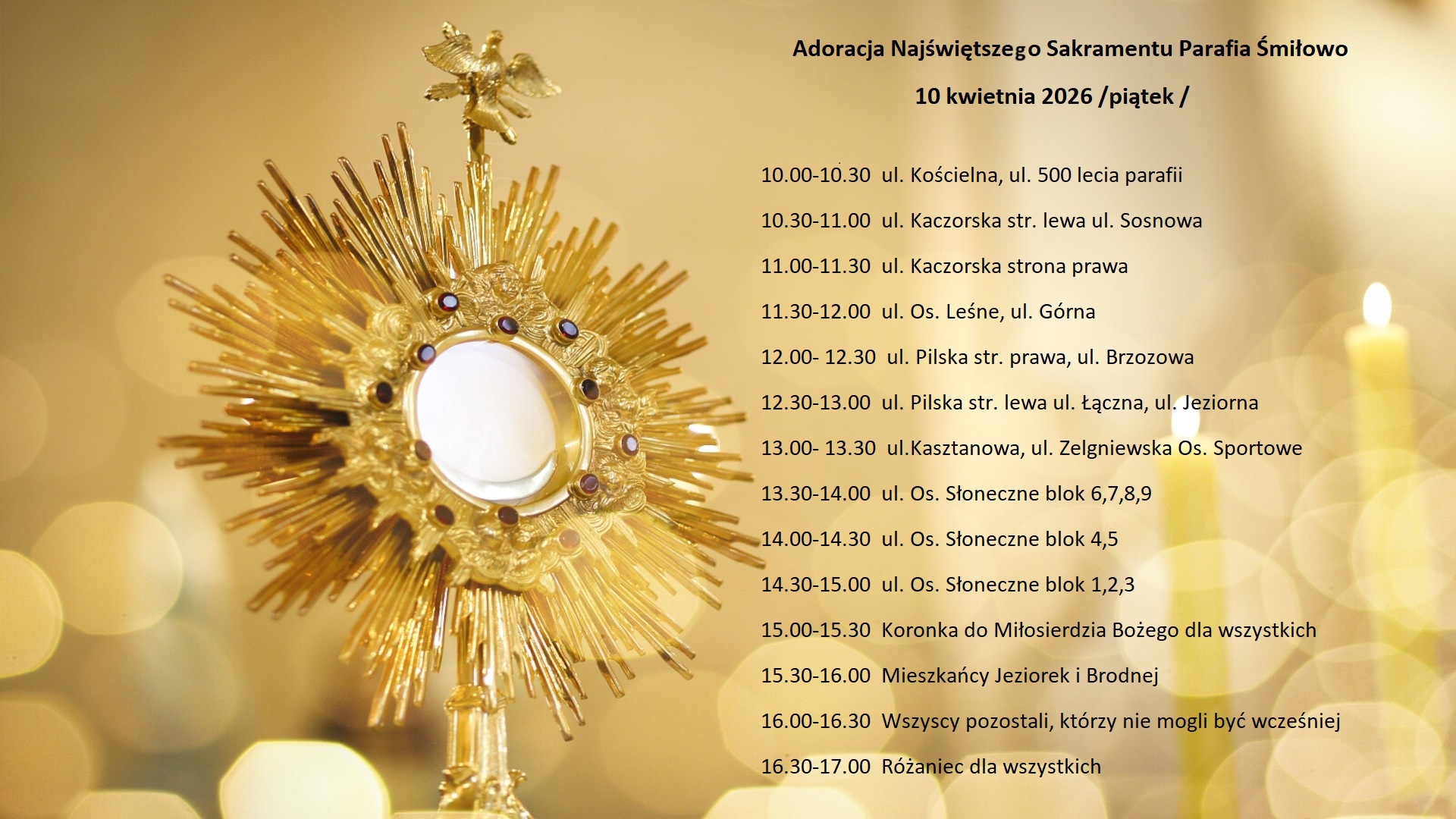 7. Coroczna Adoracja Najświętszego Sakramentu w naszej parafii odbywa się 10 kwietnia 2026 / piątek /, jej plan jest następujący: